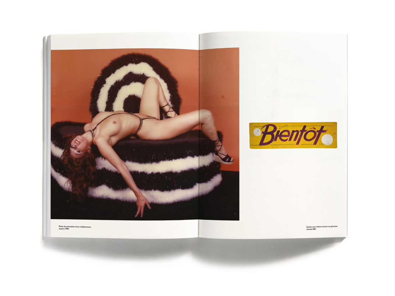 Cinema ABC opened in Brussels in 1972 and knew the golden or of pornography, sometimes called ” enchanted parenthesis “. It closed definitely in 2013, as it was one of the last porn theaters in the world to continue to screen films on argentic 35mm reels/ Through its history, this books draws the portrait of an forbidden underground world. Along its 41 years of existence, CInema ABC has became a sort of clandestine museum, full of celluloid reels, piles of posters and photos pouring out of boxes stacked one on another : a maze of of spots haunted by untold stories. The book gathers many historical references, testimonies from people who attended the place or worked there : viewers, striptease dancers, projectionnists. Texts are a abundantly ilustrated by rare or unseen documents : lobby cards, ads, newspaper bits, posters…