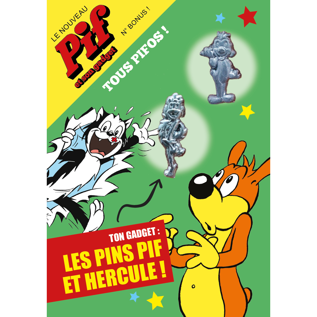Planche de deux pin’s exclusifs à l’effigie de Pif et de Hercule.