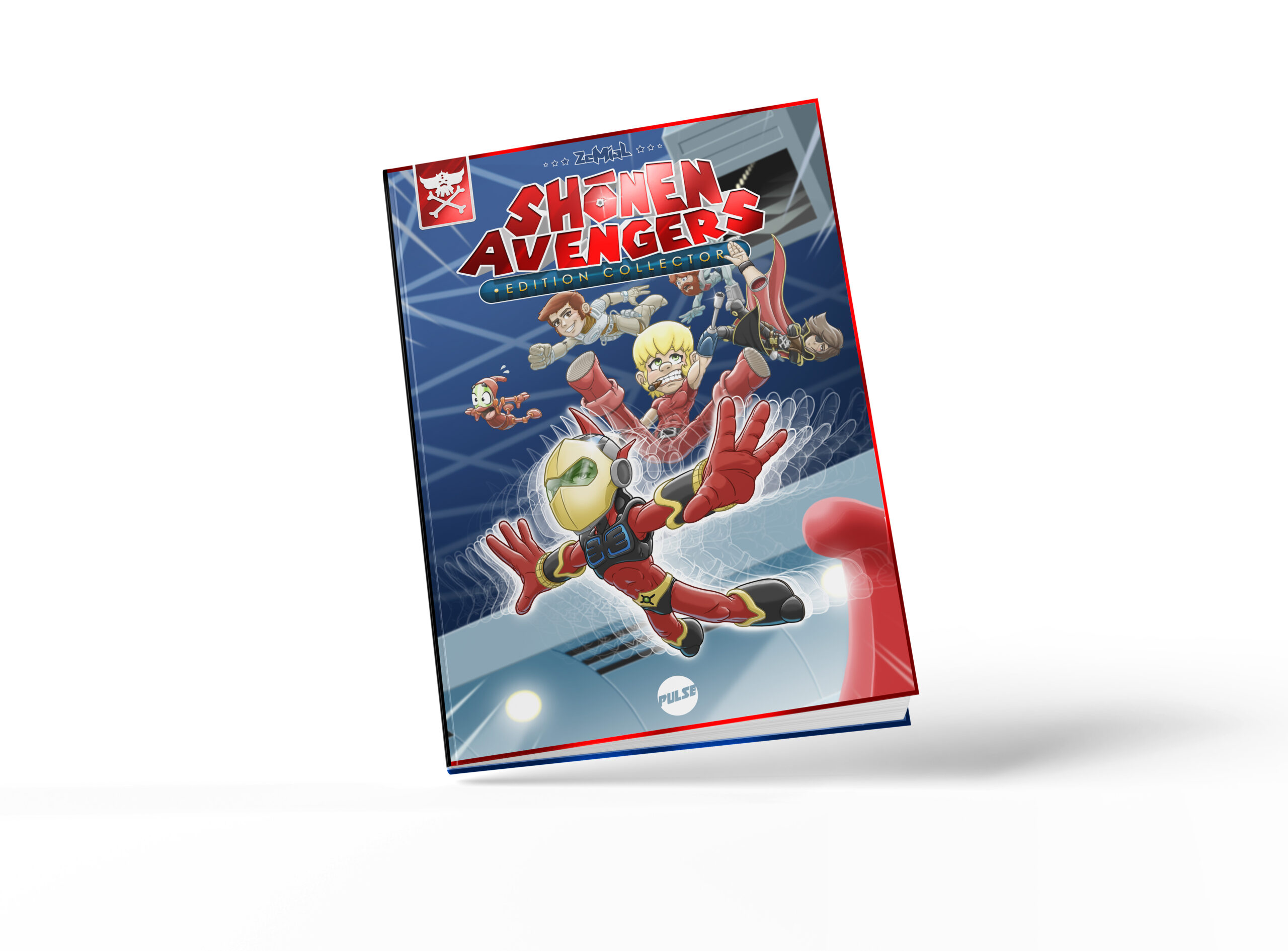 SHÕNEN AVENGERS est une aventure dessinée réunissant les plus grands justiciers de séries animées japonaises de science-fiction des années 80. Albator, Goldorak, Capitaine Flam, Cobra ou encore Ulysse 31 y joignent leurs forces pour sauver l’univers. Les aventures de cette incroyable alliance intergalactique sont racontée à travers une série de comic-strips drôles, épiques et référencés. Ce concept peu commun, mi hommage, mi-parodie est né dans l’esprit du designer ZeMiaL. Ses planches rassemblent rapidement une communauté enthousiaste. Elles sont bientôt rassemblées dans un album, qui parait en octobre 2022 : SHÕNEN AVENGERS. 48h après sa sortie, il est déjà en rupture, et ce sans aucune communication ni promotion. Après quelques mois, l’album est définitivement sold out. En 2024, les SHÕNEN AVENGERS remettent le cap sur la planète librairie, dans une nouvelle version enrichie de 12 pages inédites et d’une couverture sublimée par une finition métallisée.